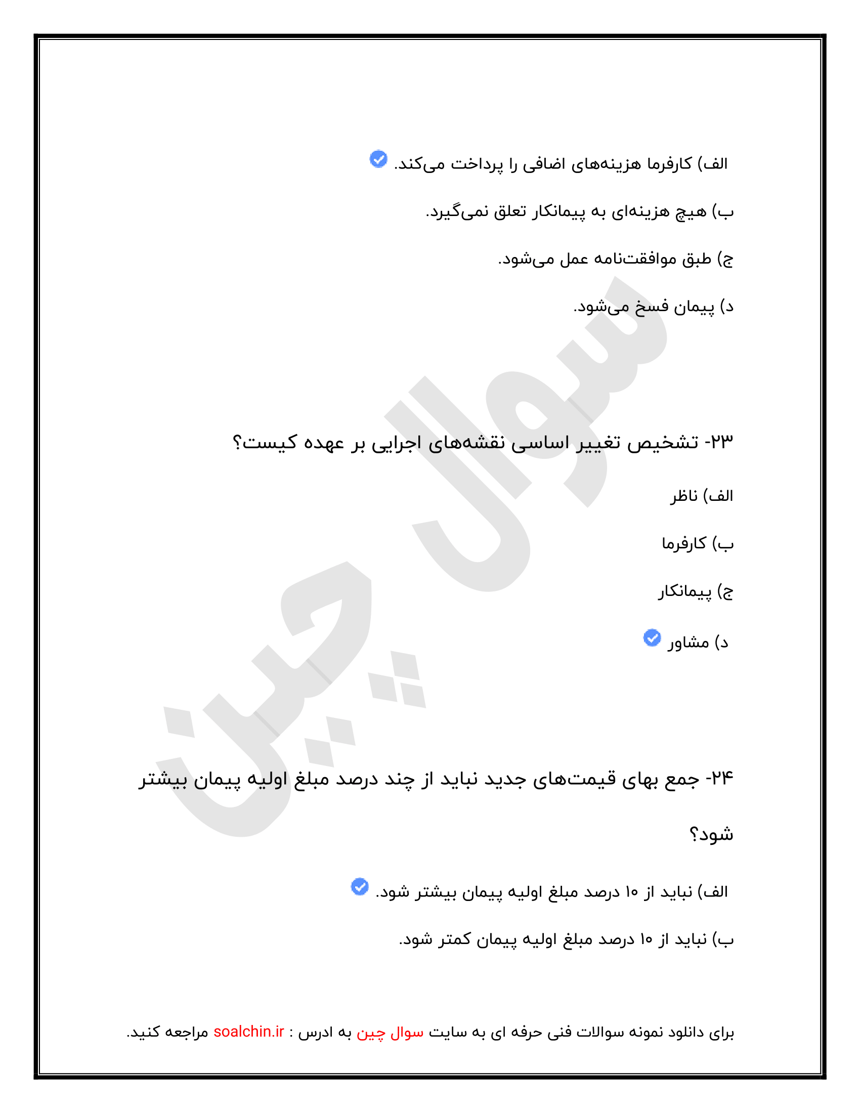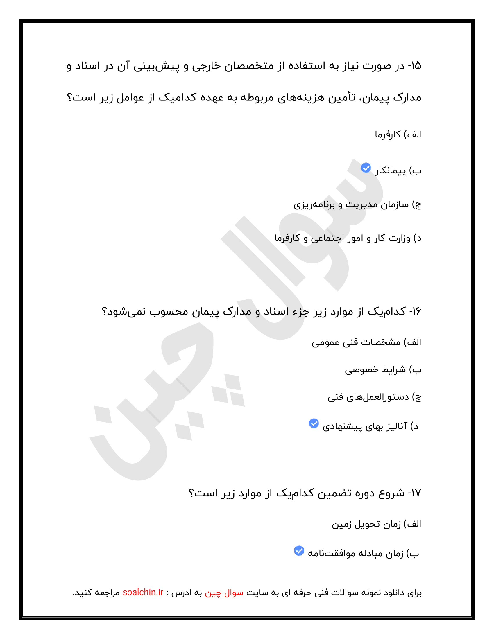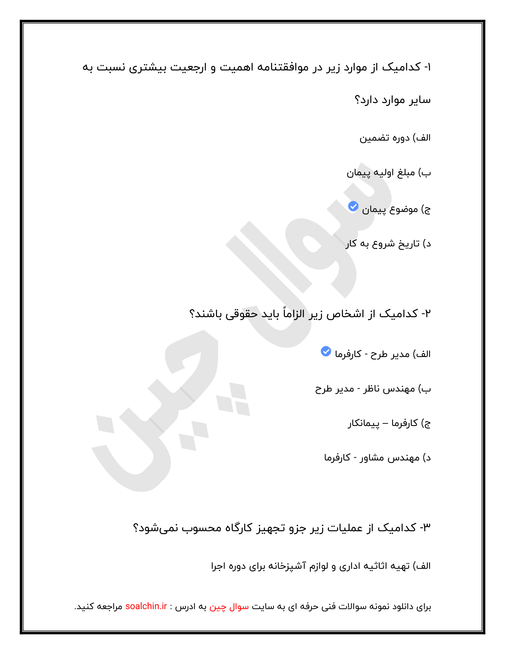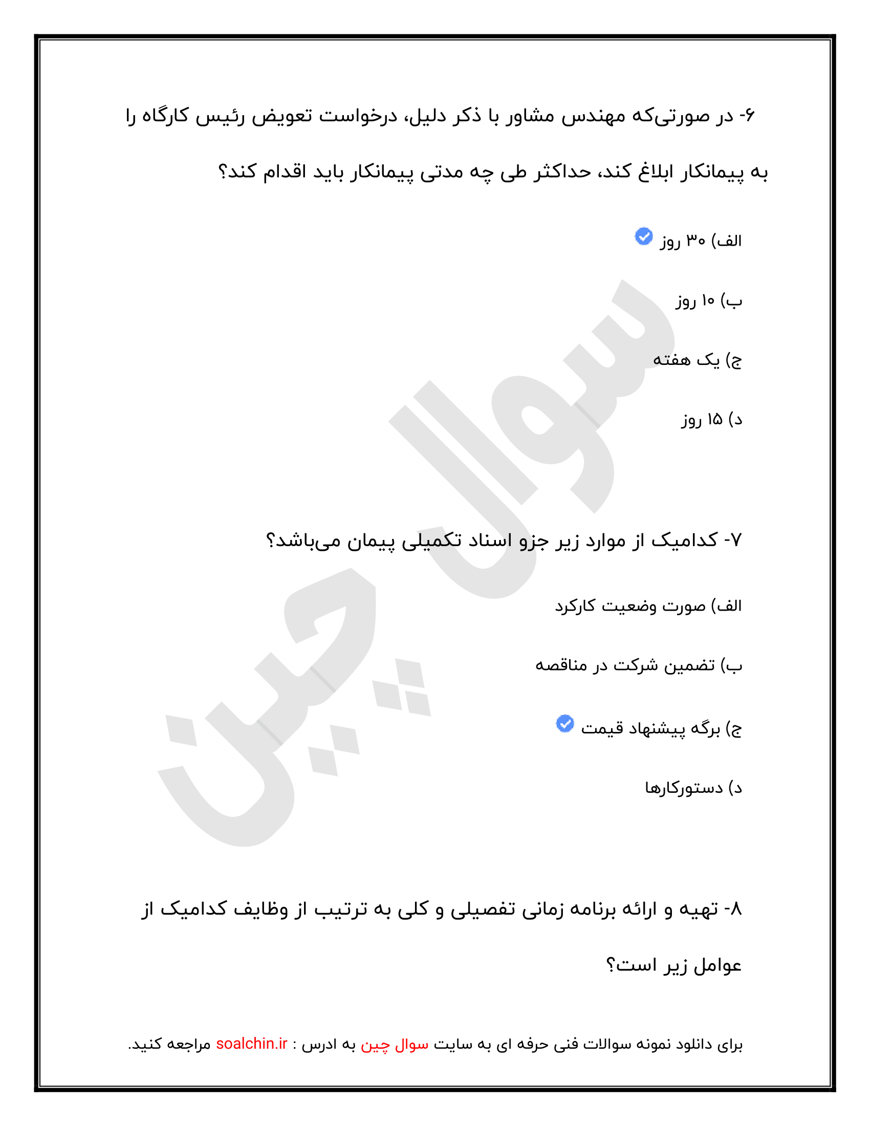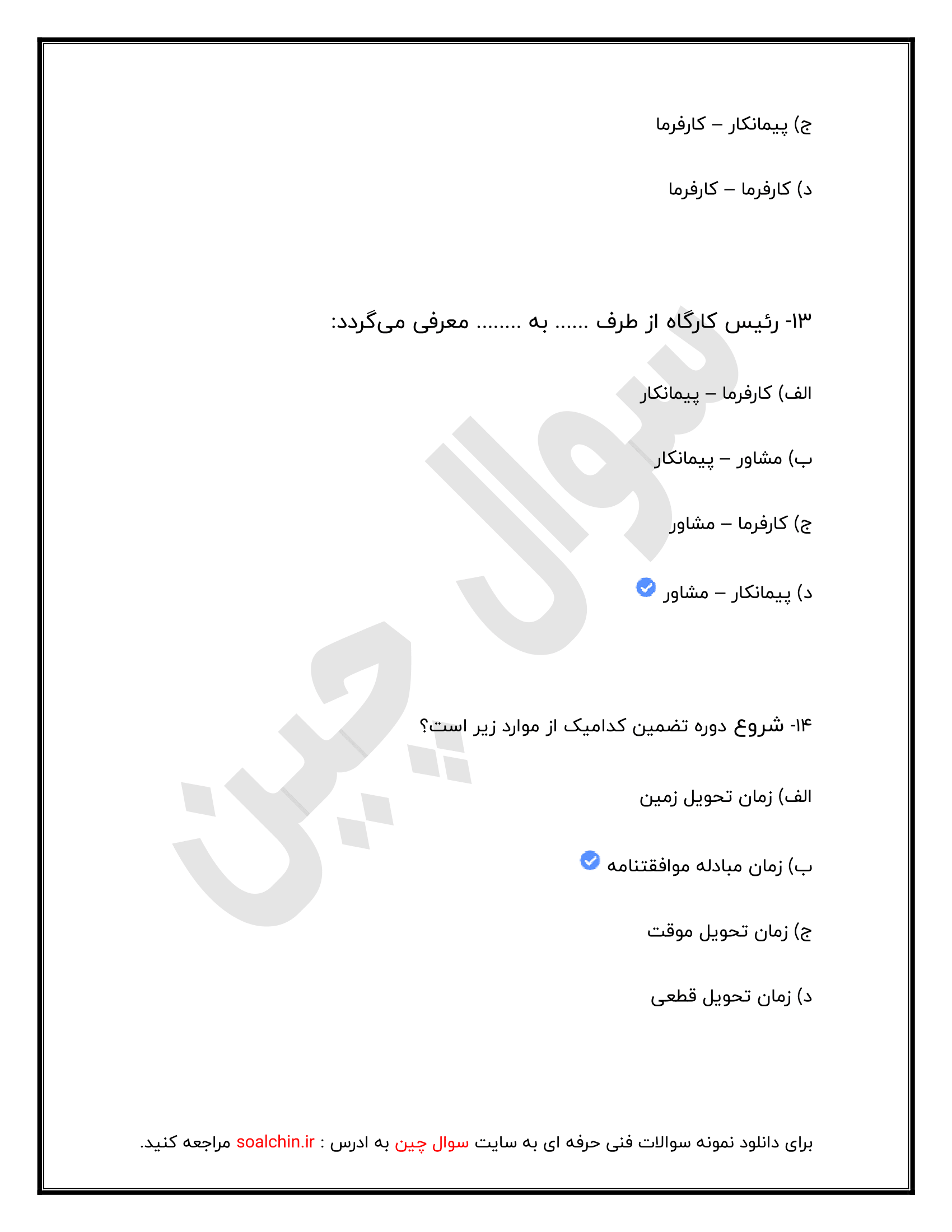 نمونه سوالات شرایط عمومی پیمان با جواب