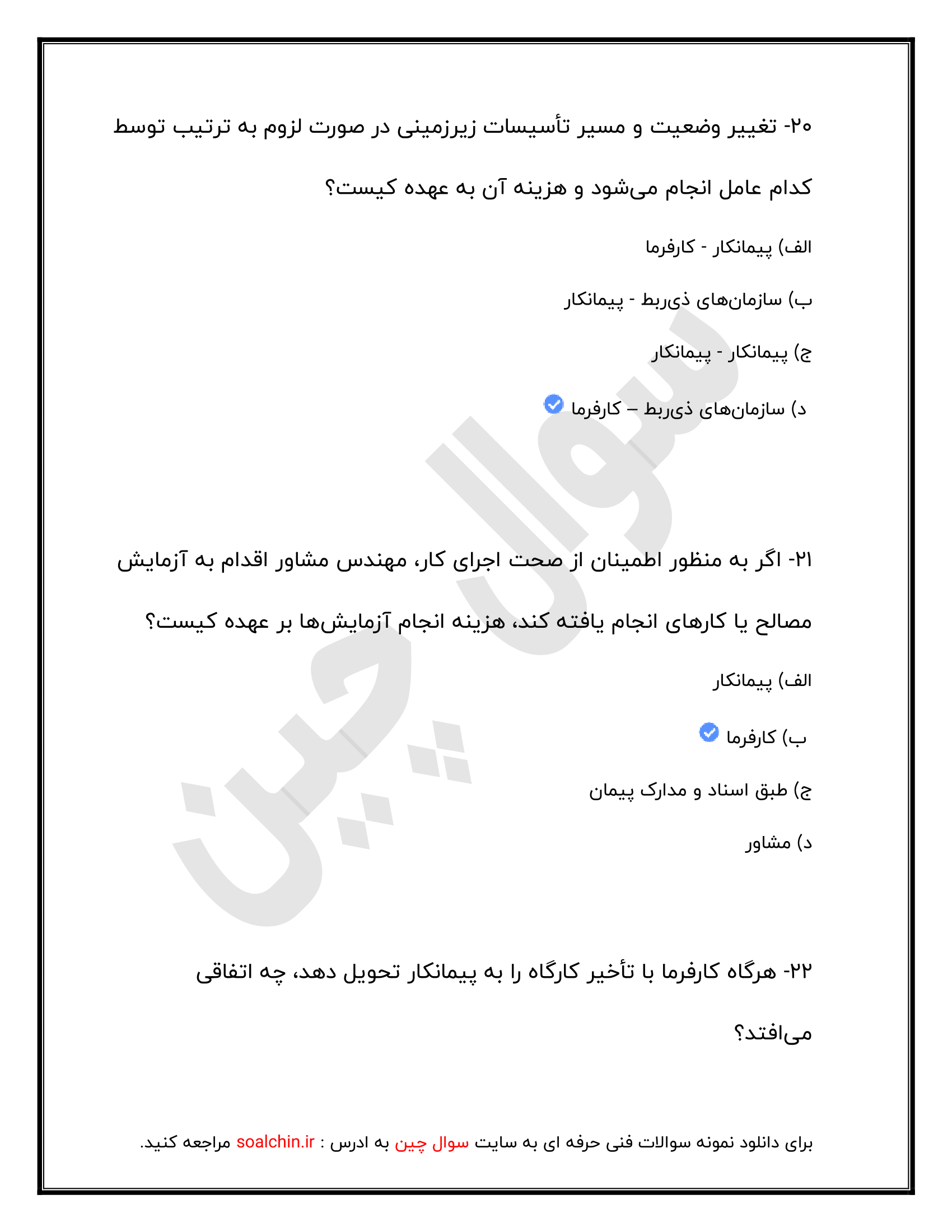 - د) با اجازه کارفرما زیر نظر پیمانکار