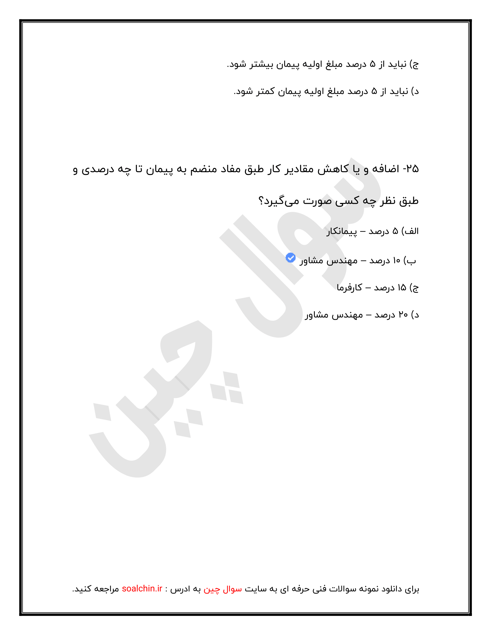 - د) نباید از 5 درصد مبلغ اولیه پیمان کمتر شود.